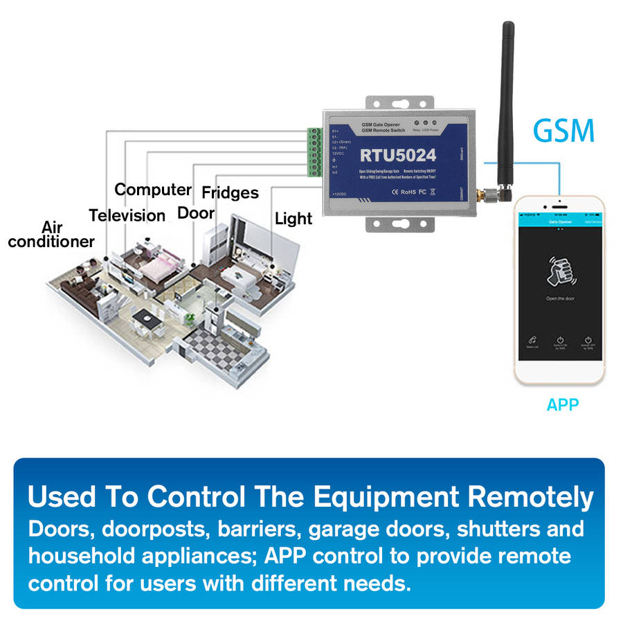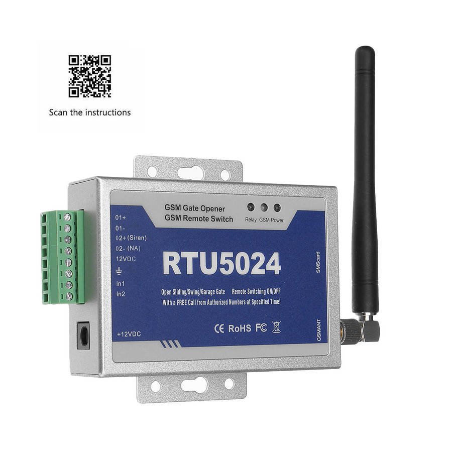 The Upgraded RTU5024 GSM Gate Opener is a very simple device which can be used for authorized door access, controlling gates, switching of remote equipments, car parking systems. Actually the GSM Gate Opener RTU5024 can be used in places which require turning ON/OFF your system, machines, equipments remotely with a FREE call from your mobile phone and protect your assets.