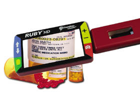 The RUBY handheld video magnifier is small and lightweight enough to fit into a pocket or purse, yet provides the magnification you need to help you read or see details, whether you are at home or on the go. The 4.3-inch, full color, bright screen makes it outstanding for reading bills, letters, checks, and receipts. The RUBY is easy to use, with large buttons that are easy to see and feel.