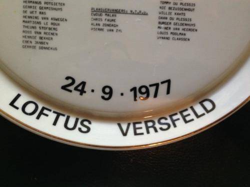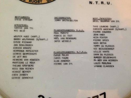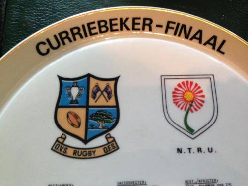 RUGBY MEMORABILIA: COMMEMORATIVE PLATE: CURRIEBEKER-BEKER FINAAL OVS VS NTRU LOFTUS VERSVELD 1977