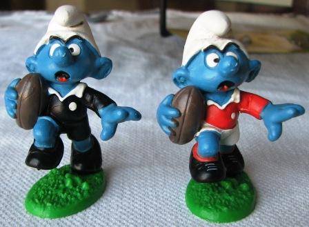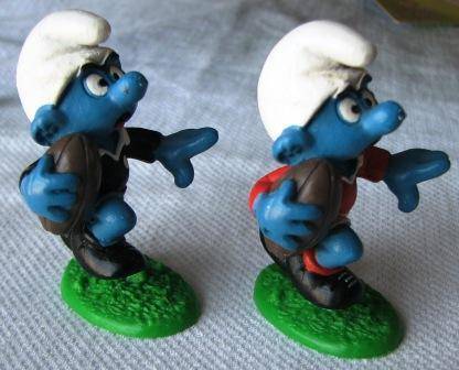 Rugby Smurfs x 2 >>>>>> EXTREMELY RARE