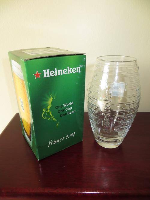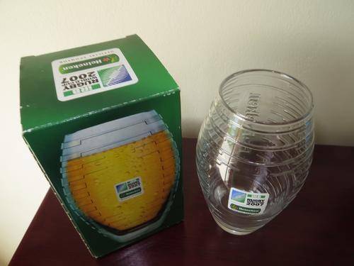 RUGBY WORLD CUP 2007 HEINEKEN BEER GLASS (SHAPED LIKE A RUGBY BALL)
