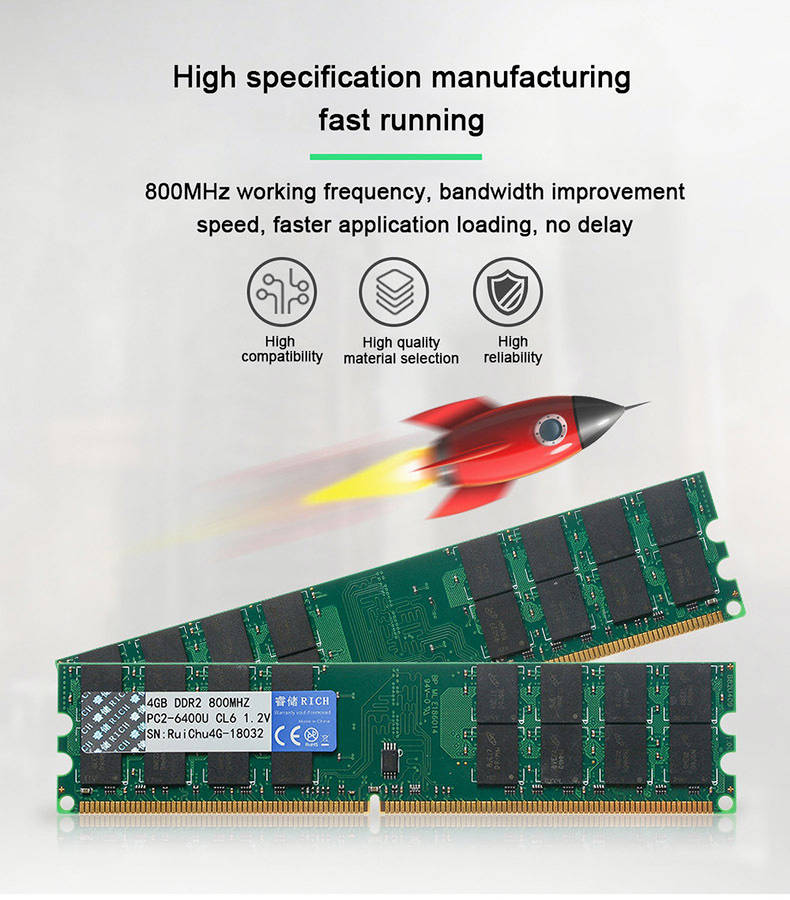 | Product | RuiChu DDR2 800MHz 4GB AMD RAM 240pin Memory Ram Memory Stick Memory Card for Desktop PC Computer |