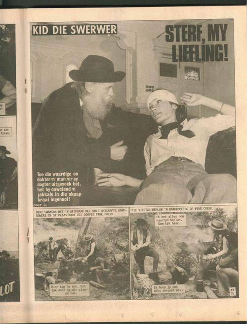 'n Uitstekende bewaarde dubbel fotoverhaal uit die RUITER IN SWART / KID DIE SWERWER reeks. 'n Eg Suid-Afrikaanse Afrikaanse versamelaars item. | |