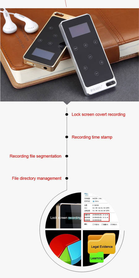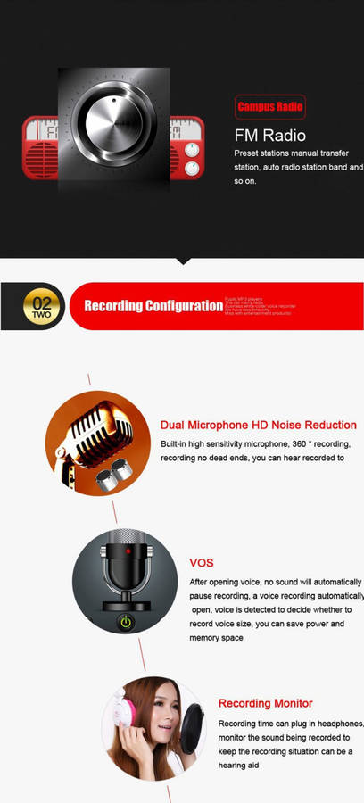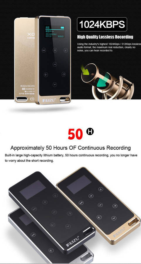 Specifications: Playing time: about 100 hours Music Format: lossless music APE / FLAC / OGG Recording time: about 50 hours Recording quality: 1024Kbps / 512Kbps When recording formats: WAV, MP3 Microphone: dual microphone stereo surround Headphone Output: 5mW / 32 Ohm MP3 bit rates: 8Kbps-320Kbps WMA Bit rate: 5Kbps-384Kbps Display screen: OLED Chinese USB connection: USB2.0 Built-in Battery: Lithium Battery Operating System: Window 98 or more