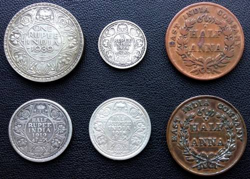 Rupee / Anna Coin Lot (the 1 Rupee looks like a copy, weight only 11,51 gr.) Sells as Copy,Forgery.