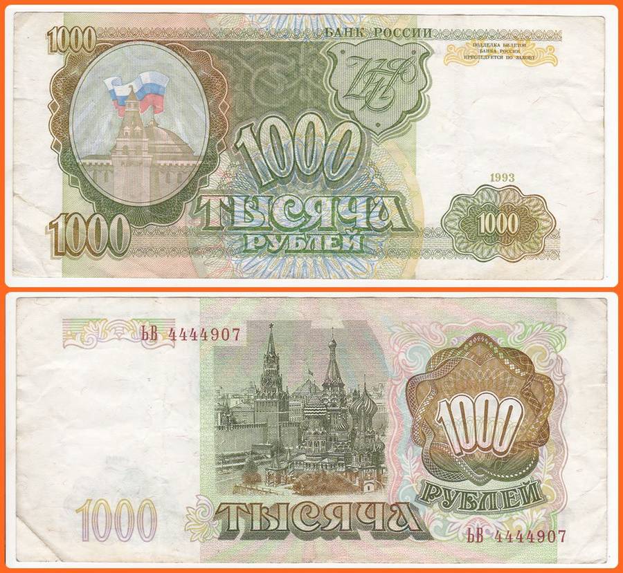 RUSSIA - 1993 - 1000 RUBLES - PIC# 257 - VF NOTE - SER# 4444907