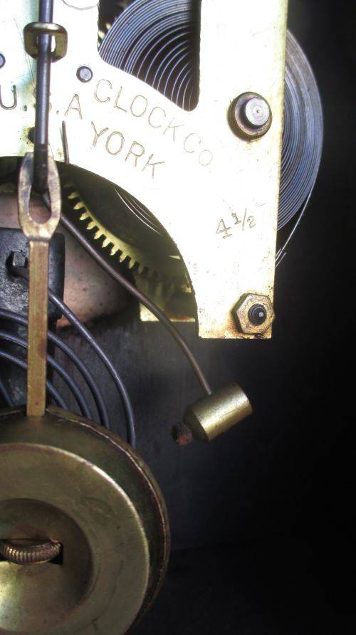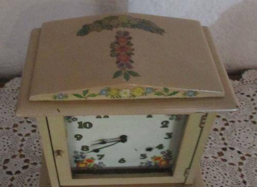 Good working condition. The American company Ansonia was sold to Russia in 1929 from where this clock originates. Height: 26.5 cm; Width: 23.5 cm. Please contact for shipping details. Due to the fragility of the clock only courier services will be considered.