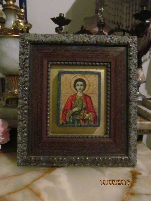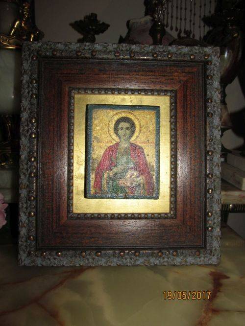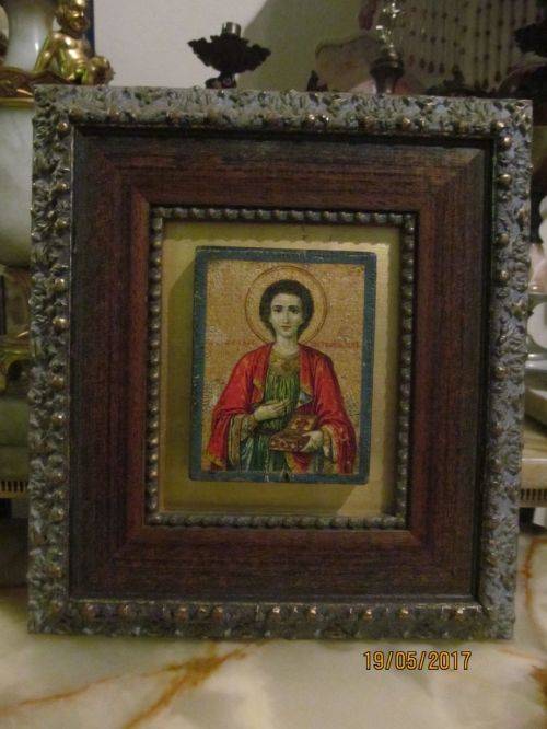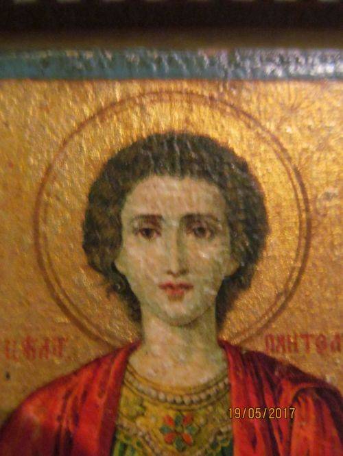 HAND PAINTED VINTAGE RUSSIAN ORTHODOX ICON - EXTREMELY RARE - SAINT PANTELEIMON THE UNMERCENARY