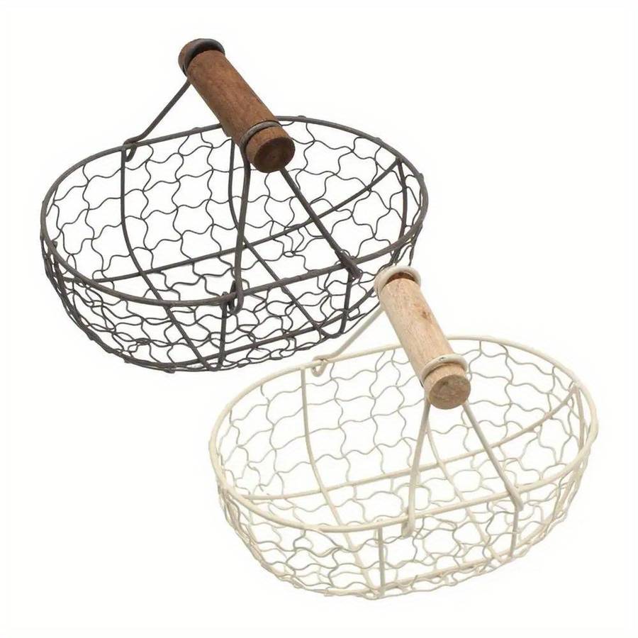 Our Egg Basket is made of durable iron and wood materials, preventing collisions and breakage while collecting eggs on the farm. The charming farmhouse design fiindividuals perfectly in your living room decor, and the ergonomic handle provides comfort during use. Make egg collecting easy and stylish with our reliable basket.