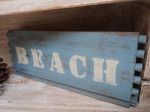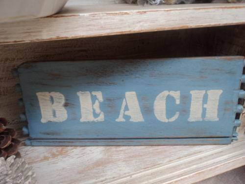 'BEACH' painted in white, some distressing and some beeswax....and there ya go;-)...a lovely rustic shelf sitter or wall decor!!!