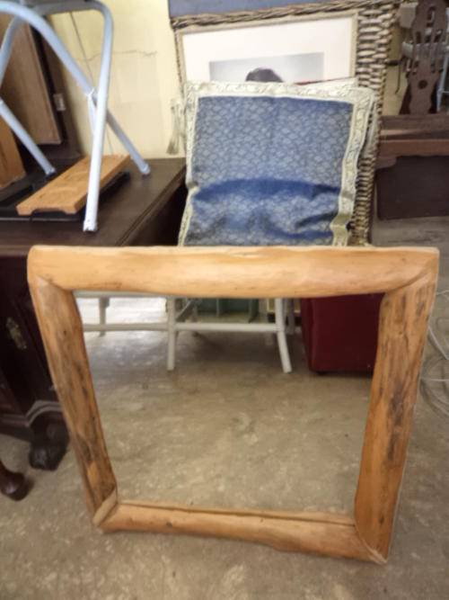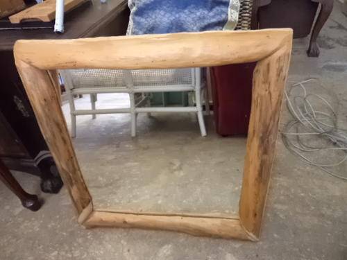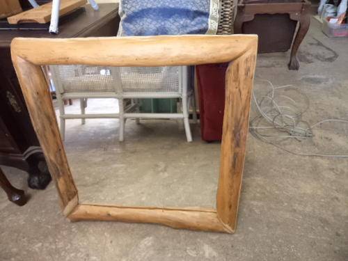 Rustic wooden mirror. size: 64cm x 64cm. width of frame is 8cm.