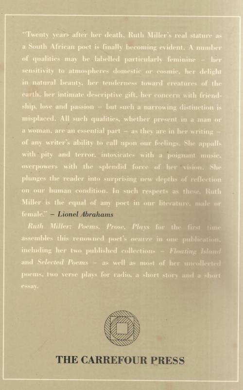 Ruth Miller Poems, Prose, Plays Ed. Lionel Abrahams
