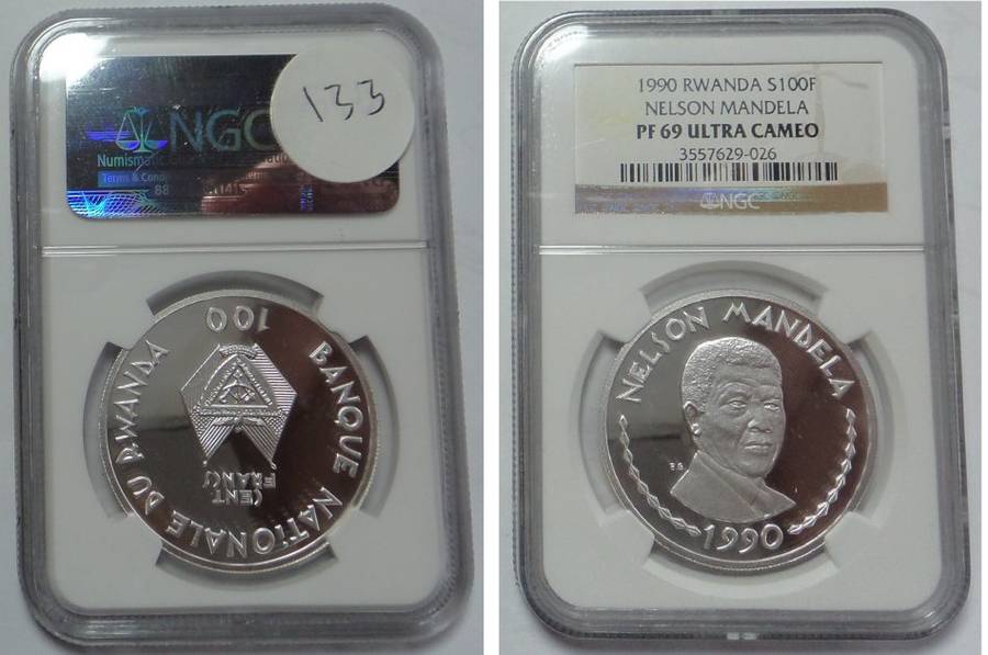 Rwanda: Silver 100 Francs 1990 (Mandela): NGC PF 69 UC