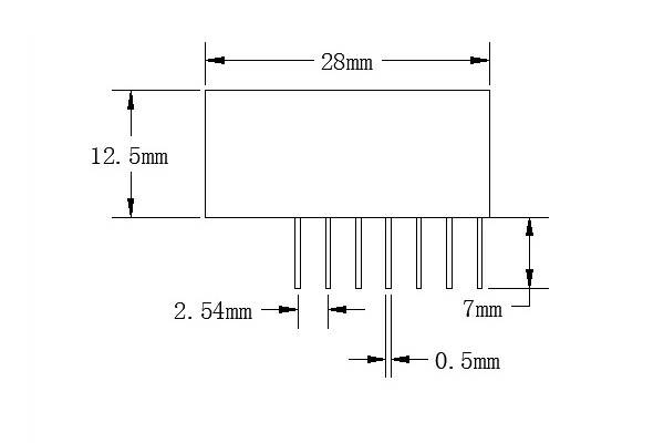 Product Features: (1) The receiving sensitivity reaches -110dBm; (2) Operating frequency: 315MHz; 433.92MHz; 330MHz; 390MHz; 418MHz (special frequency can be customized according to customer requirements) (3) Power supply voltage input range: 3.3V-5.5V; (4) Low power consumption, 5.0V @ 433.92MHz, 3.8-4.1mA; 5.0V @315MHz, 2.5-2.8mA; continuous data transmission rate up to 2.4K (Manchesterencoding) (5) Good selectivity and stray radiation suppression ability, easy to pass CE/Fcc international certification; (6) Good local oscillator radiation suppression capability, multiple receiving modules can work together (that is, single-transmit and multiple-receive) and will not interfere with each other, and use together does not affect the receiving distance. (7) Temperature range: -30-85a, it can work normally even in harsh environmental temperature; (8) 2812.55.00 (mm).