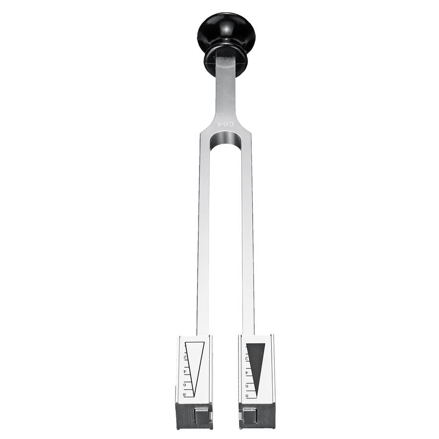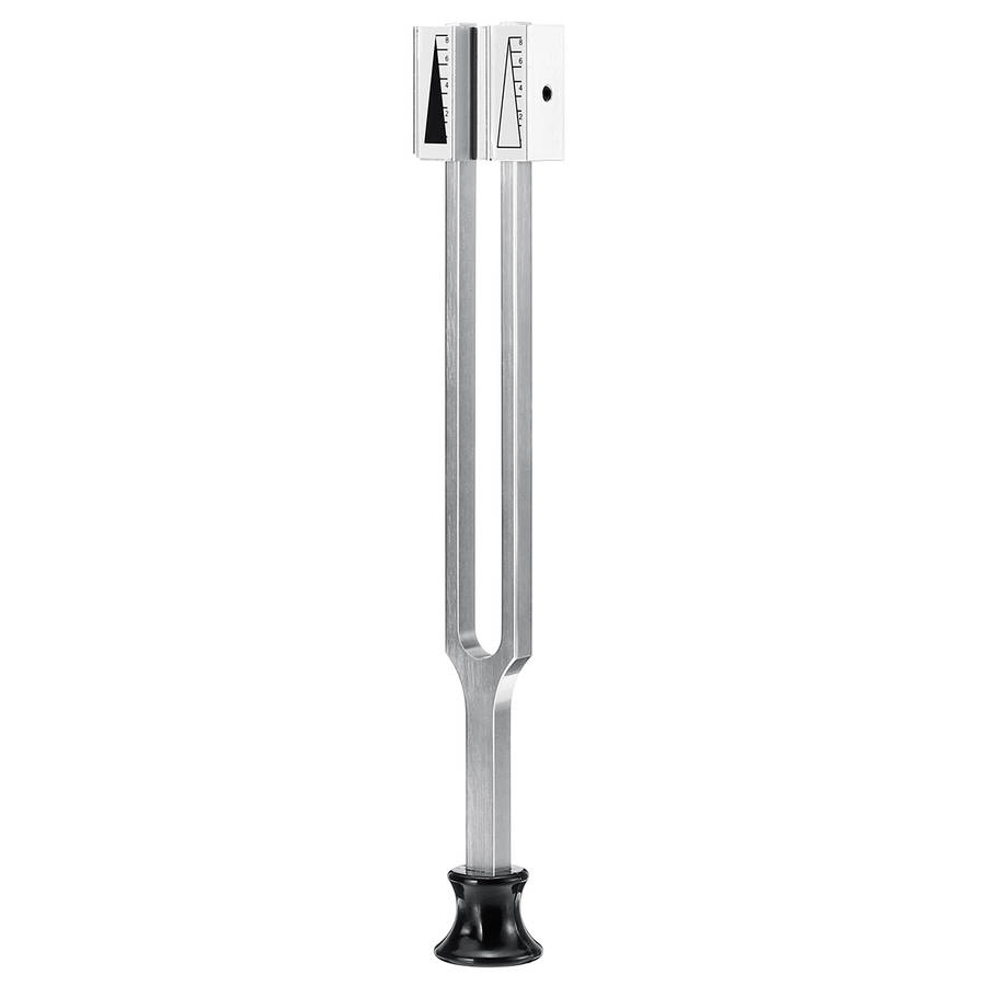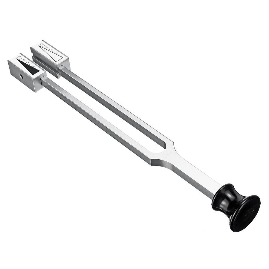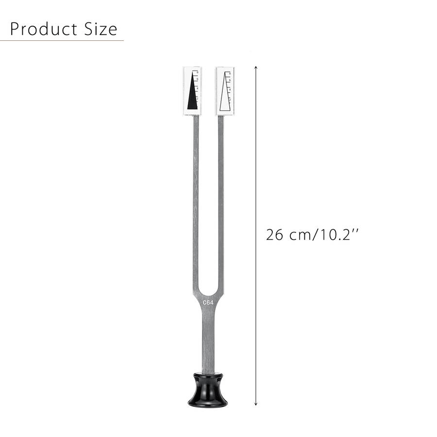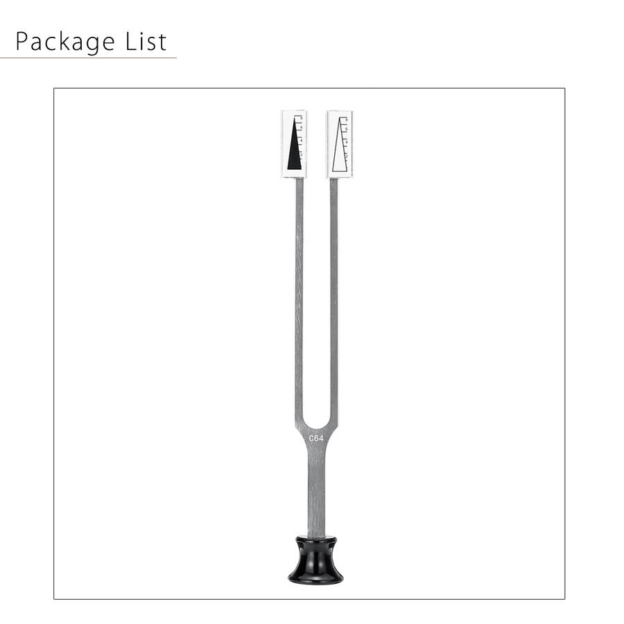 Specification: Name: Rydel Seiffer Tuning Fork (Neurologie Vibrationsgabel) Length: approx. 26 cm (10.2in) Weight: approx. 108g Material: Aluminium Alloy Applicable For: Diabetes Toxic nerve damage (ETOH, lead, heavy metals) Immune-mediated neuropathies (AIDP / Gullian Barre, CIDP) B12 deficiency / subacute combined degeneration Tabes Dorsalis (Please note that the diagnosis of neuropathy or the other conditions listed above is only made through the consultation of a qualified specialist.) Adjustment and Installation: This tuning fork produces 2 different vibrations: Vibration C64 Hz with dampers (as marked on steamers) Vibration C128 Hz without the dampers The two dampers must be flush with the lower edge of the value markings of the two forks. The imprint C64 on the dampers and the imprint C128 on the tuning fork must all point to the user when the dampers are mounted. How to use: 1. Ask the patient to close their eyes 2. The patient's foot is placed on a flat surface or placed flat on a chair, striking the tuning fork 3. Place the tuning fork end on the joint of the patient's big toe nail and place our finger under the patient's big toe while feeling the vibration. 4. Ask the patient to tell when the vibration is not felt and read the scale on the tuning fork. 5. If the scale is a 5, the patient's vibration is normal. 6. If the scale is <5, the patient's vibration is abnormal.
