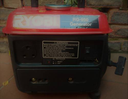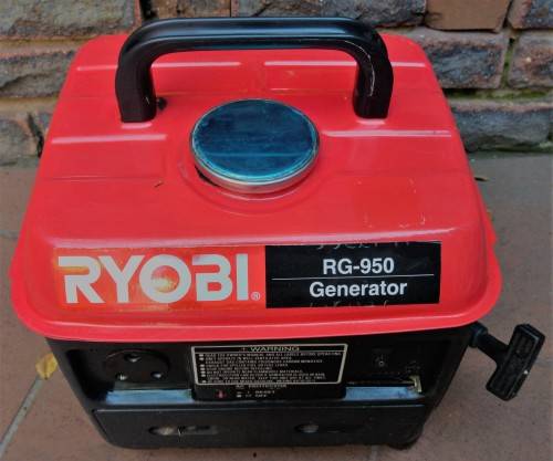 RYOBI RG-950 GENERATOR, NICE & SMALL FOR HOME OR CAMPING USE. GOOD PHYSICAL CONDITION, APPROX 3 YEARS OLD - NOT STARTING, SELLING IT AS IS. PICK-UP IN PRETORIA AREA ONLY