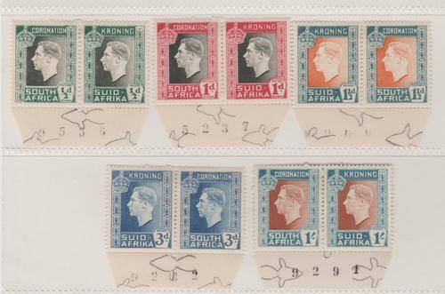 S.A. 1937 S.A.C.C. 70-74 "Coronation of King George V1 'Set of 5 Mint 2 Hinged marks (as per scan)