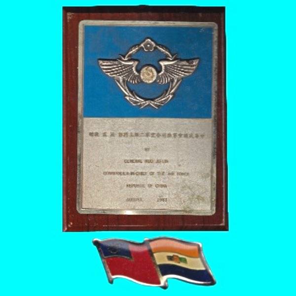 S.A.A.F. Plaque and Badge Received from a Taiwan Air Force (Republic of China) Delegation in 1983.