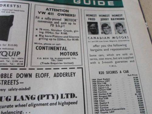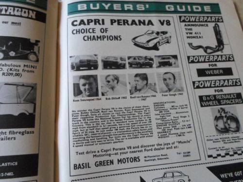 SOUTH AFRICAN CAR MAGAZINES , ALPINE RENAULT , ROLLS-ROYCE CORNICHE , MERCEDES-BENZ 350SL , FIAT 127 , MORRIS MARINA , TOYOTA CORONA , DATSUN 1200 PICK-UP , DODGE D-100 , VOLVO 145 , CHEV EL CAMINO , JAGUAR E-TYPE , RALLY , MOTOR RACING