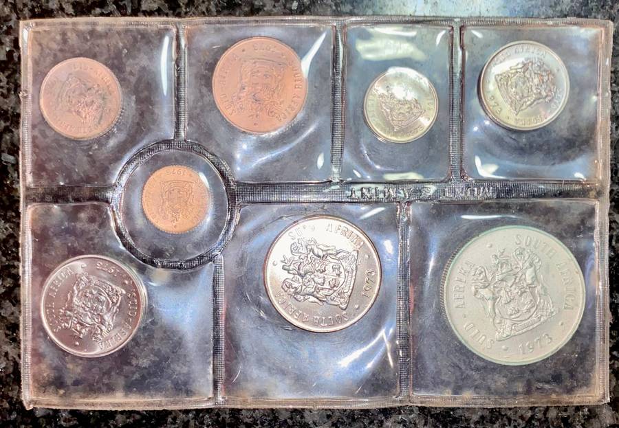 S A MINT UNCIRCULATED SET 1973 --SILVER R1 TO 1/2 CENT - SEALED FROM SA MINT S A MINT UNCIRCULATED SET 1973 --SILVER R1 TO 1/2 CENT - SEALED FROM SA MINT