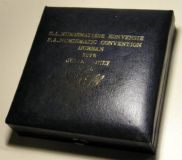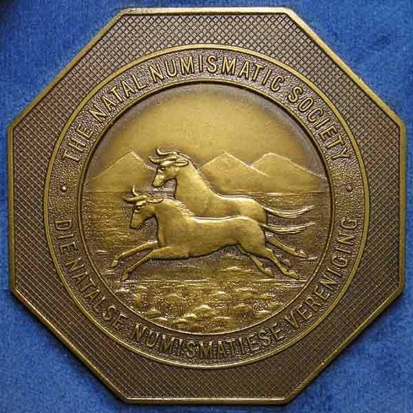 A Large Octagonal Bronze Medal for the 6th S.A. Numismatic Convention hosted by the Natal Numismatic Society and held in Durban during July 1976. Comes inside the original blue presentation with gilded lettering on the lid.