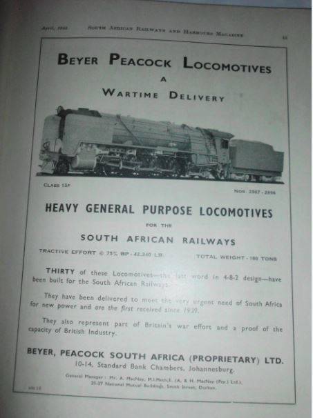 SAR - SAS - SA VERVOERDIENSTE - LOKOMOTIEF - CLASS LOCOMOTIVE - STEAM - VINTAGE OLD ADVERTISING -ADVERTS - SA RAILWAYS-RHODESIA