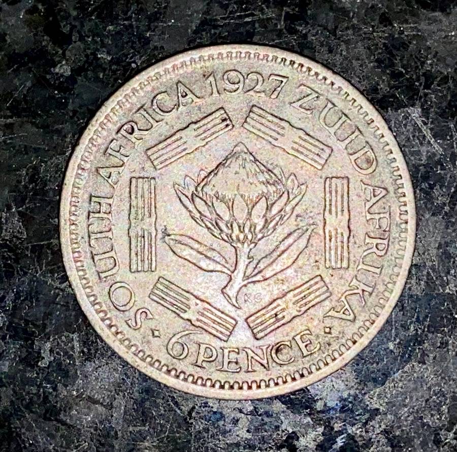 S A Union. silver 6d sixpence 1927 S A Union. silver 6d sixpence 1927
