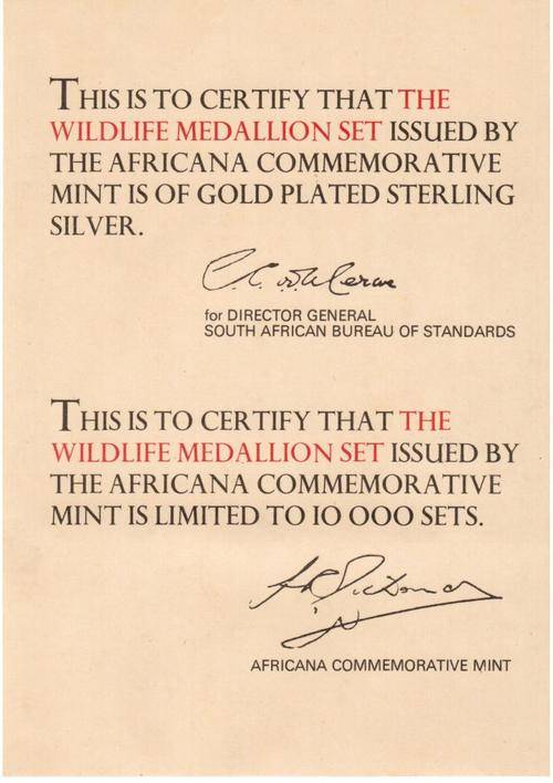 The set of 24 medallions depicting South African animals, as a tribute to our wildlife heritage. Thus the sets were limited to only 10,000 sets Worldwide.