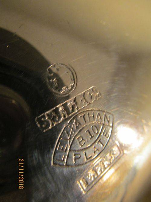 STAMPS/MARKS ETC : THE ITEM IS STAMPED UNDERNEATH - "S.J.L & Co, LEVIATHAN PLATE, B.10, EPNS"