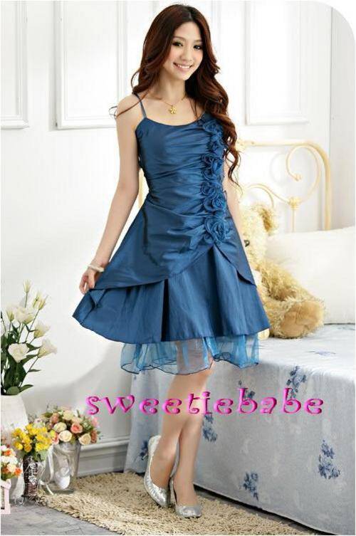 S08 FASHION RUFFLE FLOWER COCKTAIL PARTY DRESS SLIVER S