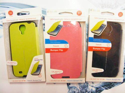 S4 Samsung Galaxy French Bumper Black Flip case cover for S 4 i9500, anti shock + free screenguard