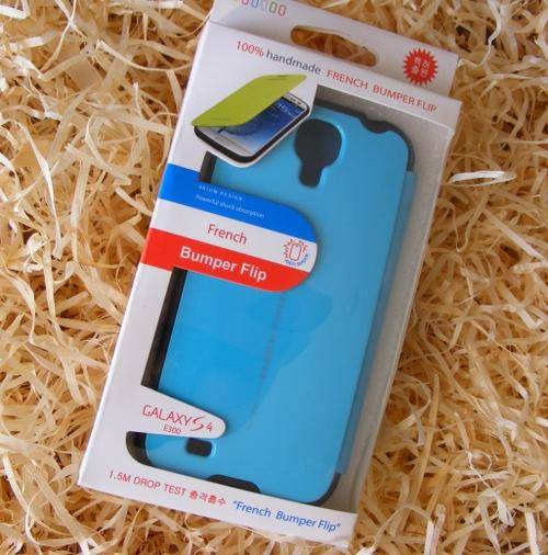 S4 Samsung Galaxy French Bumper Flip case cover for S 4 i9500, anti shock + free screen protector