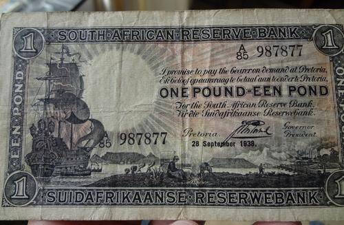 SA 1 Pound (Postmus 1st issue)1938, in F+ condition