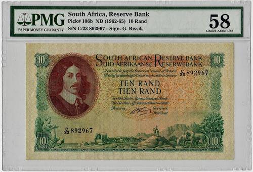 SA 10 Rand (G Rissik 1st issue)1962, E/A *PMG Graded aUNC 58*