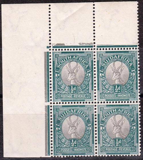 SA 1933: 1/2d CORNER BLOCK OF 4 STAMPS MNH (SACC55d)