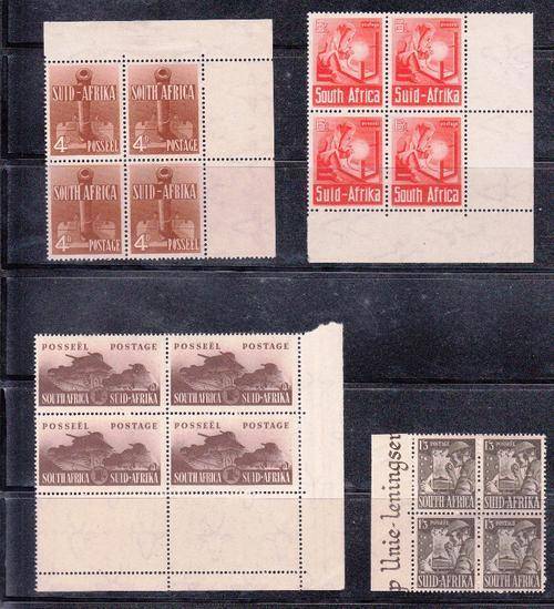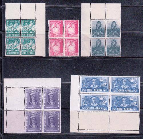 SA 1941-3: SA WAR EFFORT LARGE FORMAT FULL SET MAINLY CORNER BLOCKS OF 4 MNH