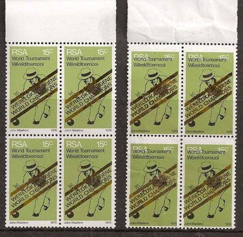 SA 1976 Bowls Winners 15c block of 4 with spectacular green colour shift, down