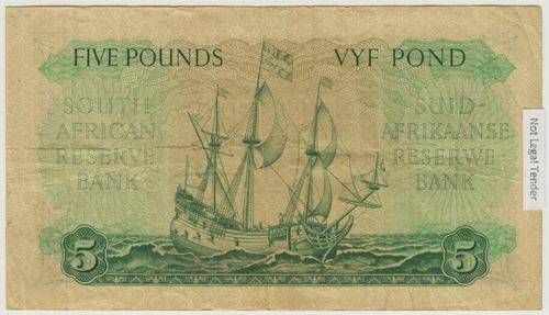 SA 5 Pounds (M de Kock 3rd issue)1959, E/A in F+/VF condition