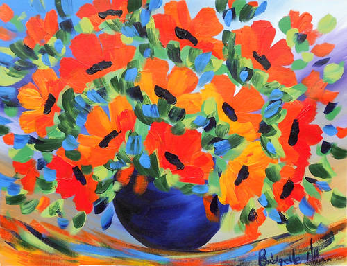 Bridgette's paintings are diverse. She loves deep colour and often uses vast tonal contrasts in her work, changing between the brush and palette knife to create paintings full of movement and energy; whether they be floral arrangements or landscapes. However, nude studies have become Bridgette's trademark. Monochrome work was initially unusual for Bridgette and her first nude studies were nothing more than experimentation with a different style. Demand for the works have determined that the nude studies have become Bridgette's top sellers.