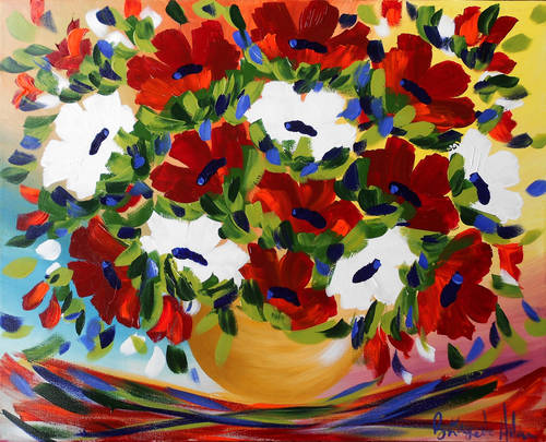 Bridgette's paintings are diverse. She loves deep colour and often uses vast tonal contrasts in her work, changing between the brush and palette knife to create paintings full of movement and energy; whether they be floral arrangements or landscapes. However, nude studies have become Bridgette's trademark. Monochrome work was initially unusual for Bridgette and her first nude studies were nothing more than experimentation with a different style. Demand for the works have determined that the nude studies have become Bridgette's top sellers.