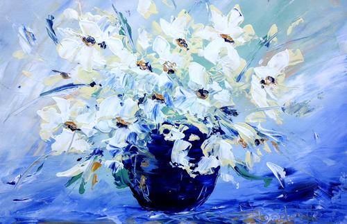 Bridgette's paintings are diverse. She loves deep colour and often uses vast tonal contrasts in her work, changing between the brush and palette knife to create paintings full of movement and energy; whether they be floral arrangements or landscapes. However, nude studies have become Bridgette's trademark. Monochrome work was initially unusual for Bridgette and her first nude studies were nothing more than experimentation with a different style. Demand for the works have determined that the nude studies have become Bridgette's top sellers.