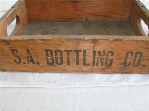 One Antique S. A. Bottling Company Glass Cooldrink Bottle wooden crate - in very good condition considering the age. Size is 36cm x 26cm.