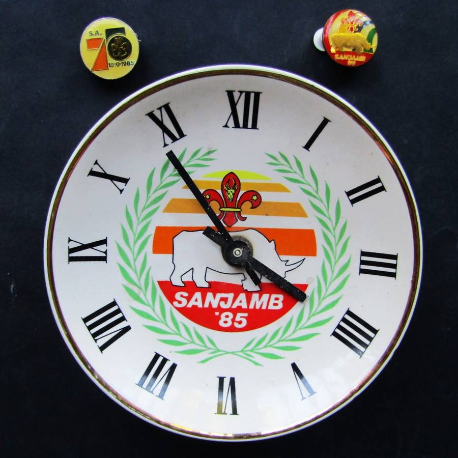 SA Boy Scouts Wall Clock and Pin Badges from the 80's.