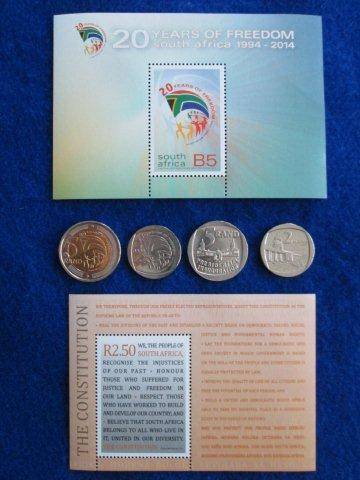2014 - 20 Years of freedom R5.00, 2004 - 10 Years of freedom R2.00, 1994 - presidential Inaguration R5.00, 2013 - 100th Anniversary Union Building (Circulated coins).