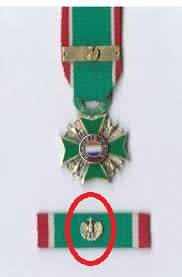 Description; "Bar button The Bar to denote a subsequent award of the decoration, is 32 millimetres wide and silver-gilt, in its centre an eagle, similar to those between the arms of the cross on the decoration itself. When only ribbon bars are worn, a recipient of a subsequent award would have worn a silve-gilt button depicting this eagle, 8 millimetres in diameter, on the ribbon bar".