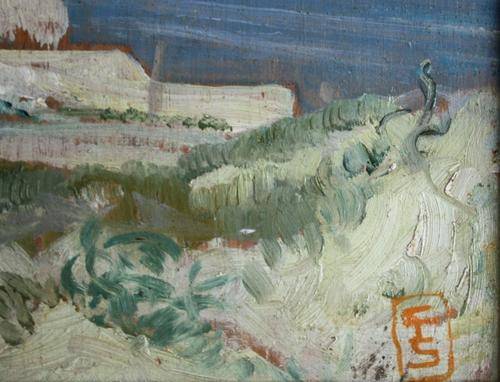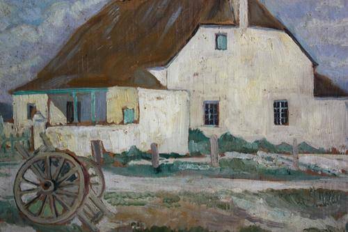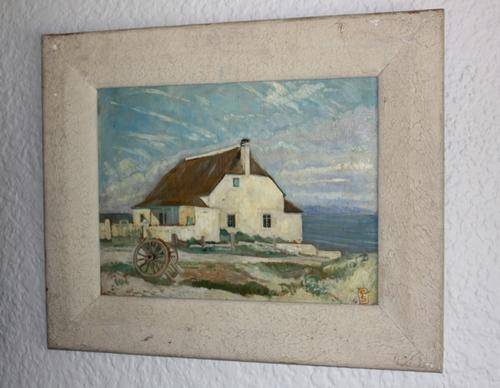 SA Landscape with sea-side cottage and wagon- With Monogram