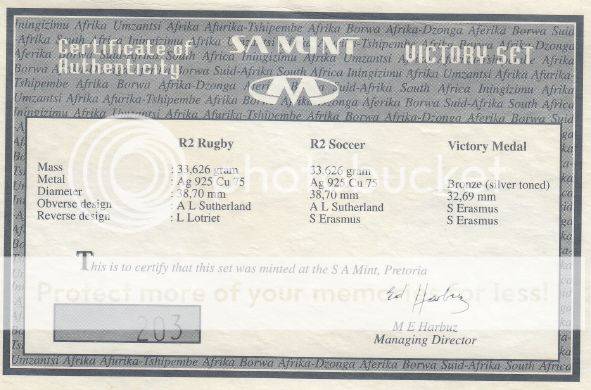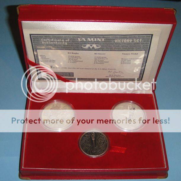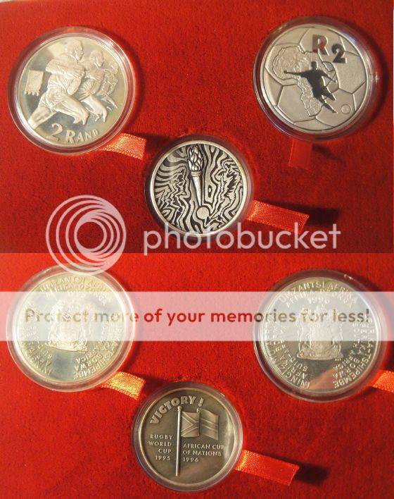 SA Mint: Victory Sterling Silver R2 Crown Set (1995 Rugby & 1996 Soccer)