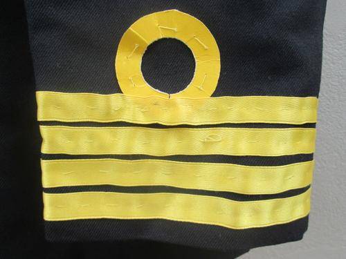 SA Navy issued black jacket. Border War vintage (1984) Excellent condition. Correct brass buttons intact. The sleeve rank is a mystery; either some kind of fantasy makeup for a fancy dress, or a "concept design" of ribbon and cardboard. Selling as found. Size is AS 107 - fits as a medium. Manufacturer's label intact. P&P is R52.00.