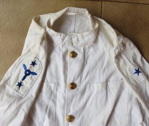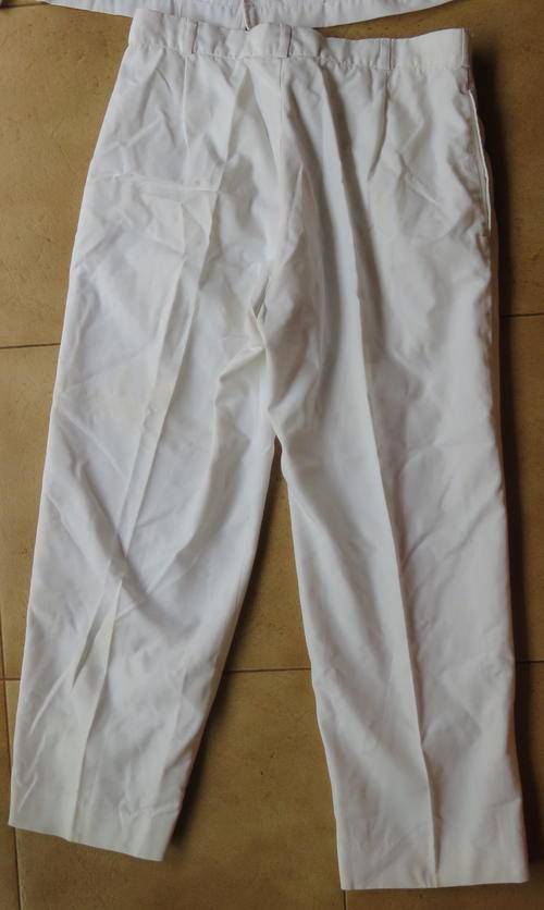 SA NAVY UNIFORM-SUMMER DRESS TO A ENGINE ROOM MECHANIC-LEADING SEAMAN-TROUSERS A SIZE 32 WITH PIPE LENGTH OF 70CM-JACKET A SIZE MEDIUM-MEASURES 52CM ARMPIT TO ARMPIT -1980'S