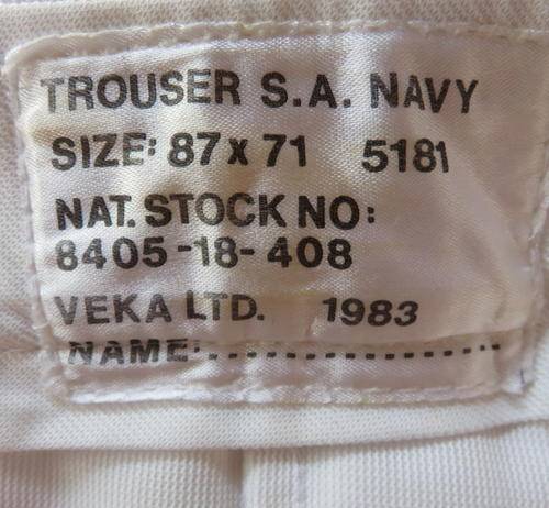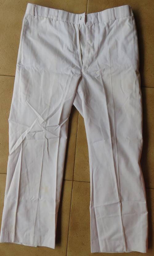 SA NAVY UNIFORM-SUMMER DRESS TO A ENGINE ROOM MECHANIC,LEADING SEAMAN TROUSERS SIZE 32 PIPE LENGTH 7
